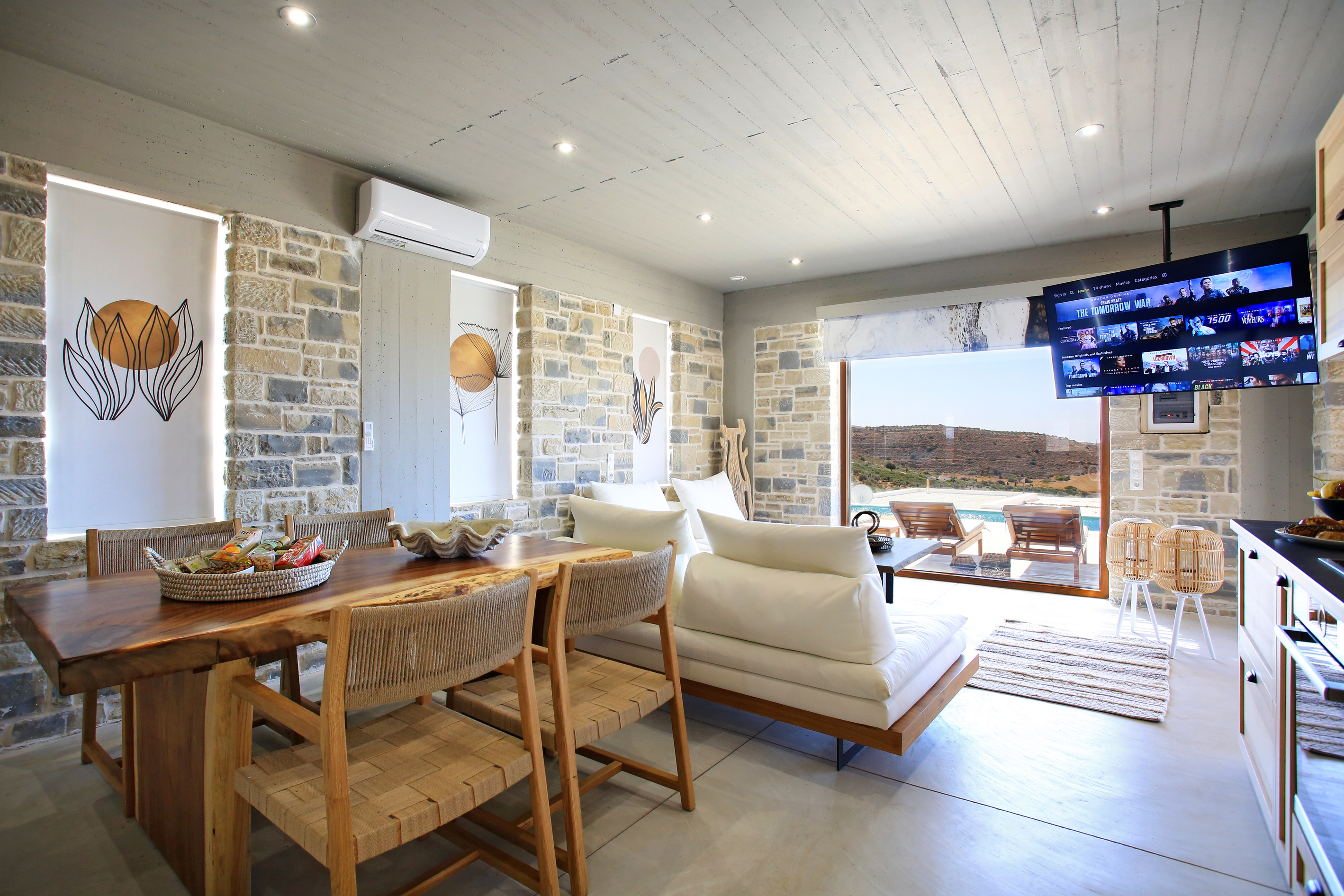 Phaestias Terra ist ein Komplex von drei brandneuen Luxusvillen namens Akalli, Xenodice n’ Phaedra, gebaut im Jahr 2021. Sie haben direkten Blick auf das Meer und die kretische Natur und bieten absolute Privatsphäre. Jede Villa verfügt über einen eigenen grossen Garten und Terrasse und einen privaten Infinity-Pool, der auf Anfrage beheizt werden kann. Die Aussendesign verschmilzt mit den Farben der Natur, während im Innenraum Stein und Holz in einer modernen und gemütlichen Verschmelzung vorherrschen. Jede Villa verfügt über zwei Schlafzimmer mit eigenem Bad und Coco-Mat- umweltfreundliche Matratzen, die ein einzigartiges Schlaferlebnis garantieren. Die Besucher genießen einen erholsamen und sehr komfortablen Urlaub.