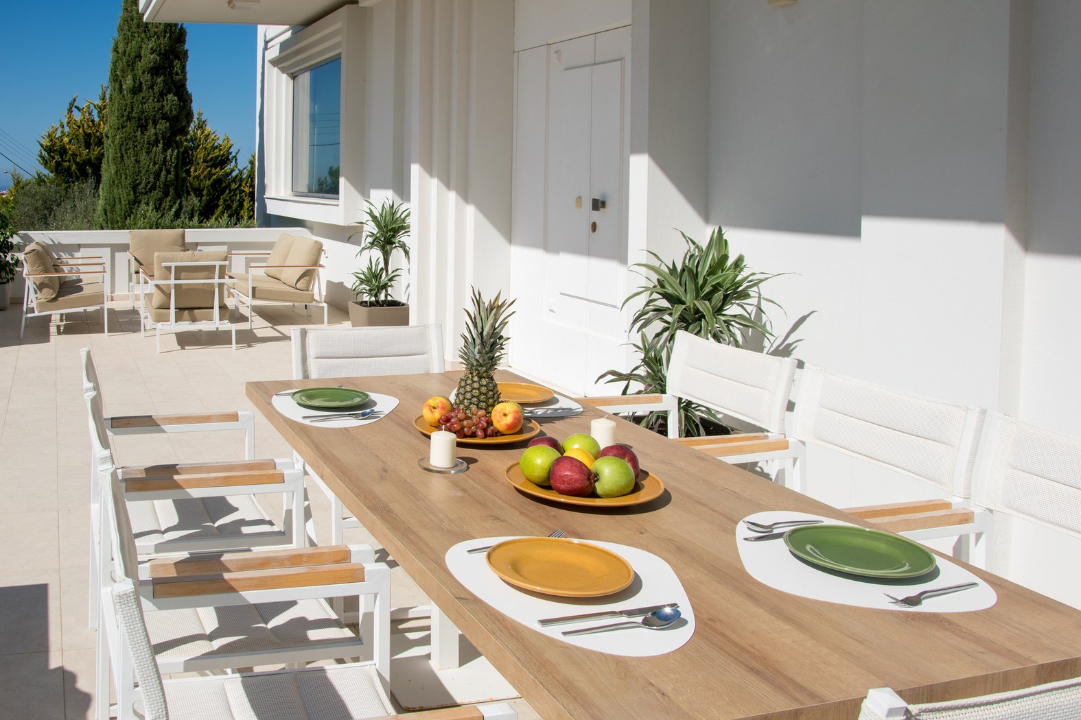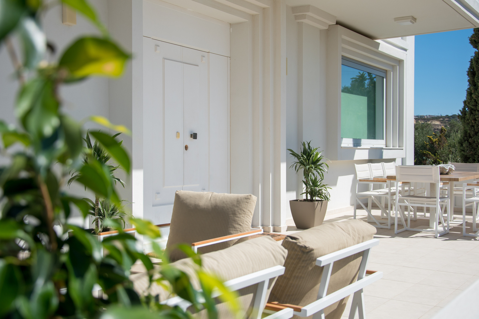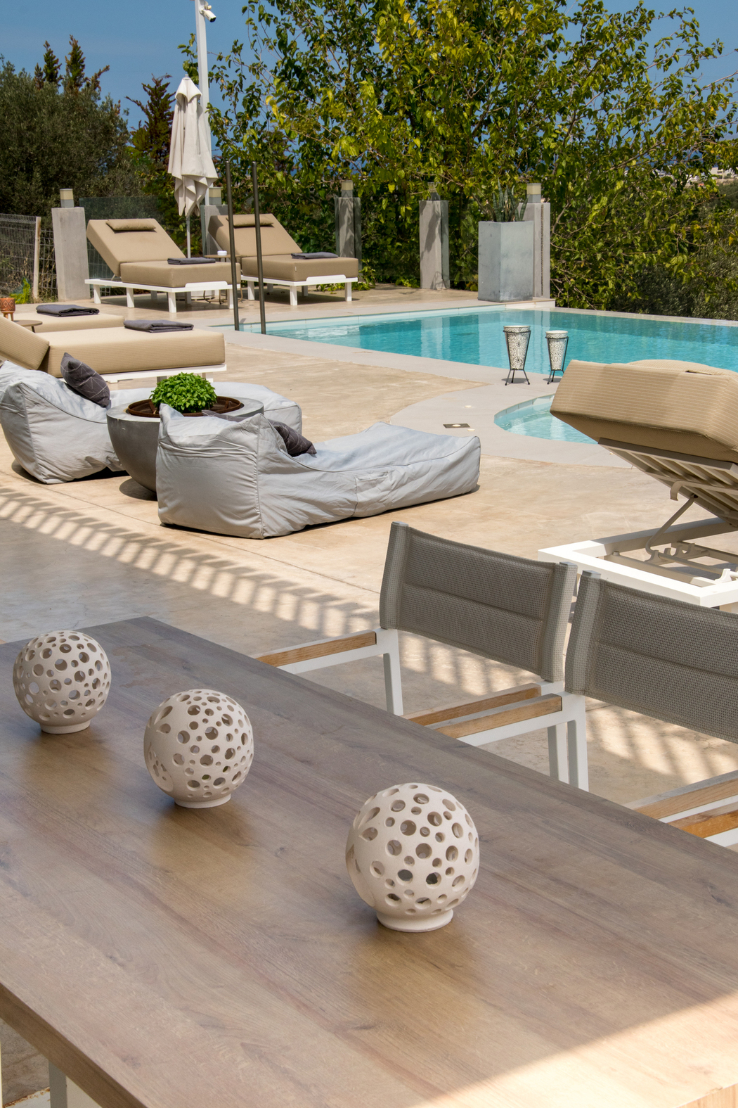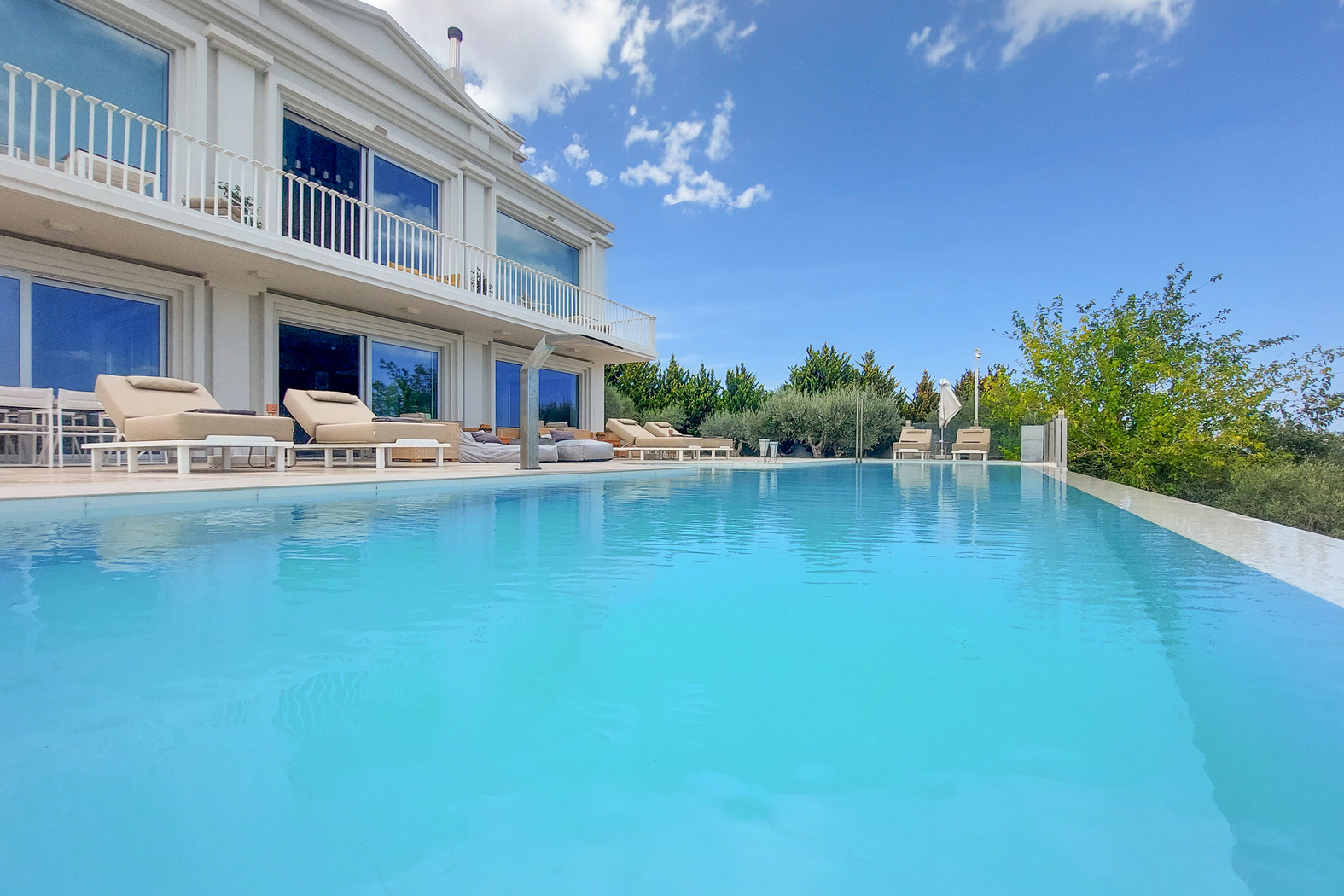 Σε ένα ήρεμο και γεμάτο πράσινο περιβάλλον, που περιβάλλεται από ελιές και καρποφόρα δέντρα, απλώνεται το The Mansion, μια πολυτελής βίλα με 470m² εσωτερικού χώρου και 2000m² εξωτερικού χώρου και κήπων, με εξωτερική πισίνα μήκους 15 μέτρων και εσωτερική θερμαινόμενη πισίνα 18m². Πρόκειται για ένα εντυπωσιακό κτήριο μοναδικού σχεδιασμού, με στοιχεία νεοκλασικής αρχιτεκτονικής συνδυασμένα με μοντέρνες γραμμές. Τα ελληνικά μάρμαρα, το ξύλο βελανιδιάς και το γυαλί είναι τα υλικά που κυριαρχούν.