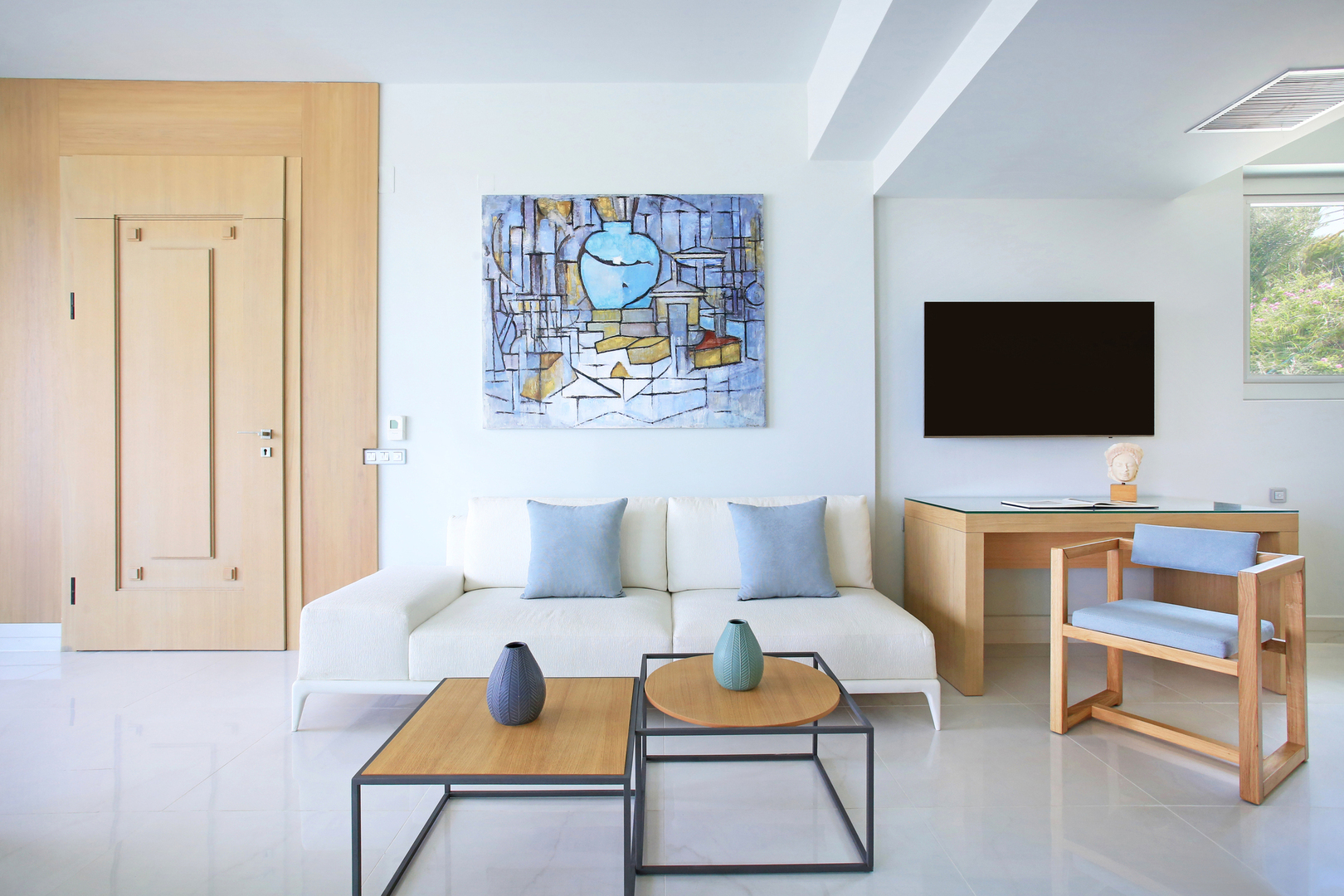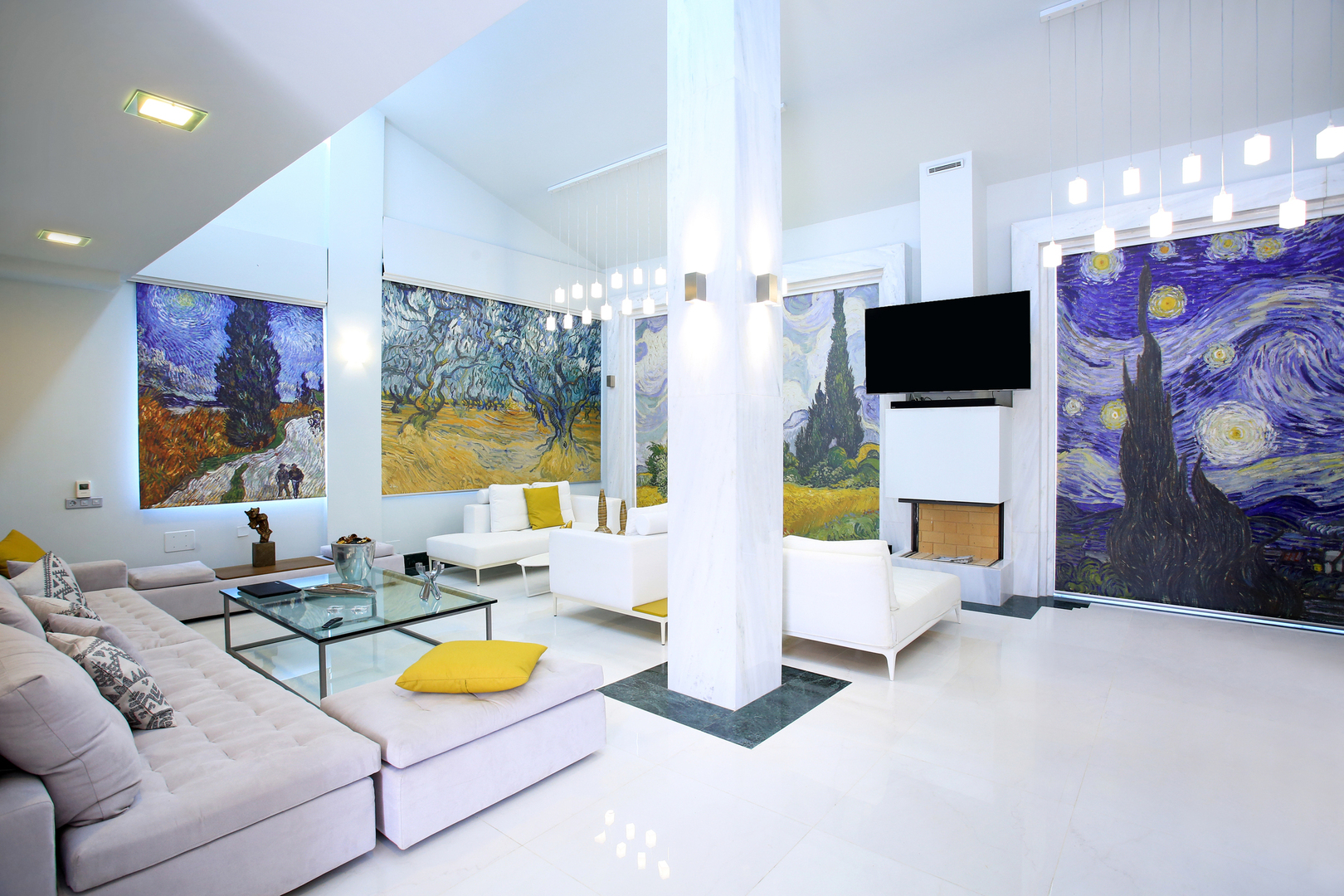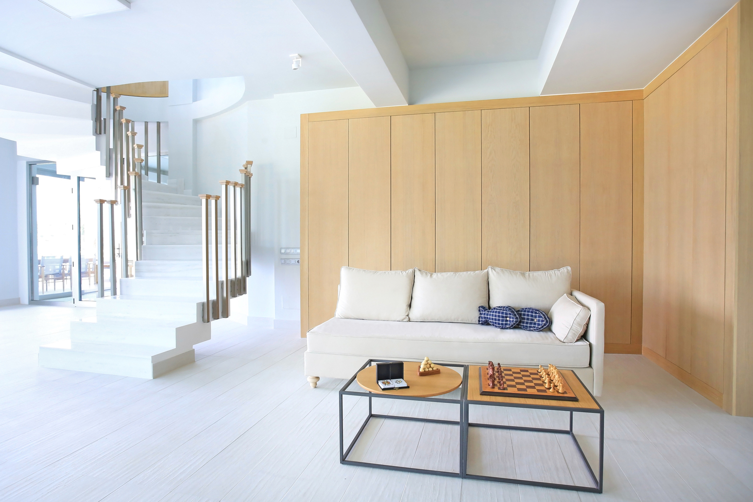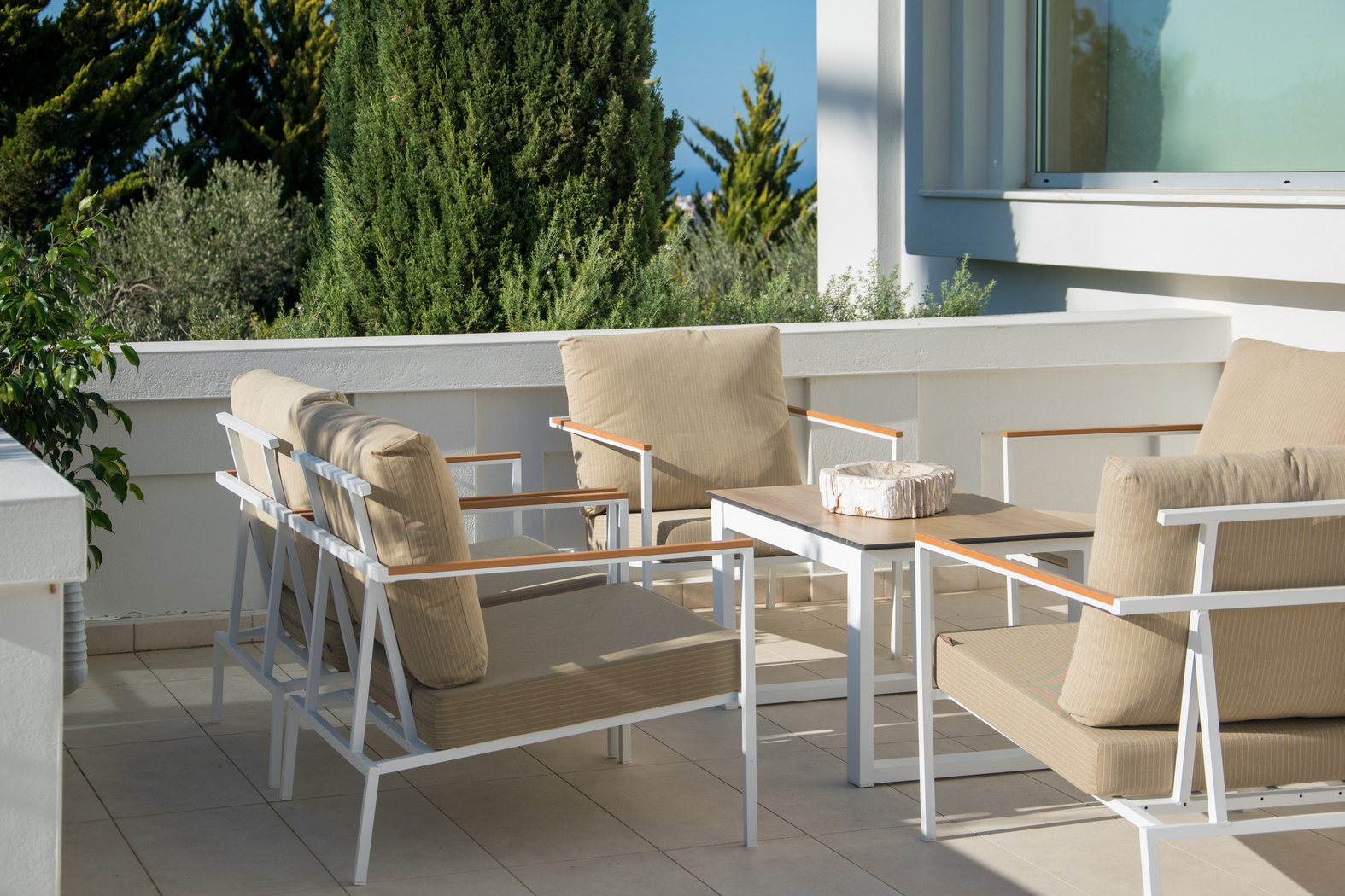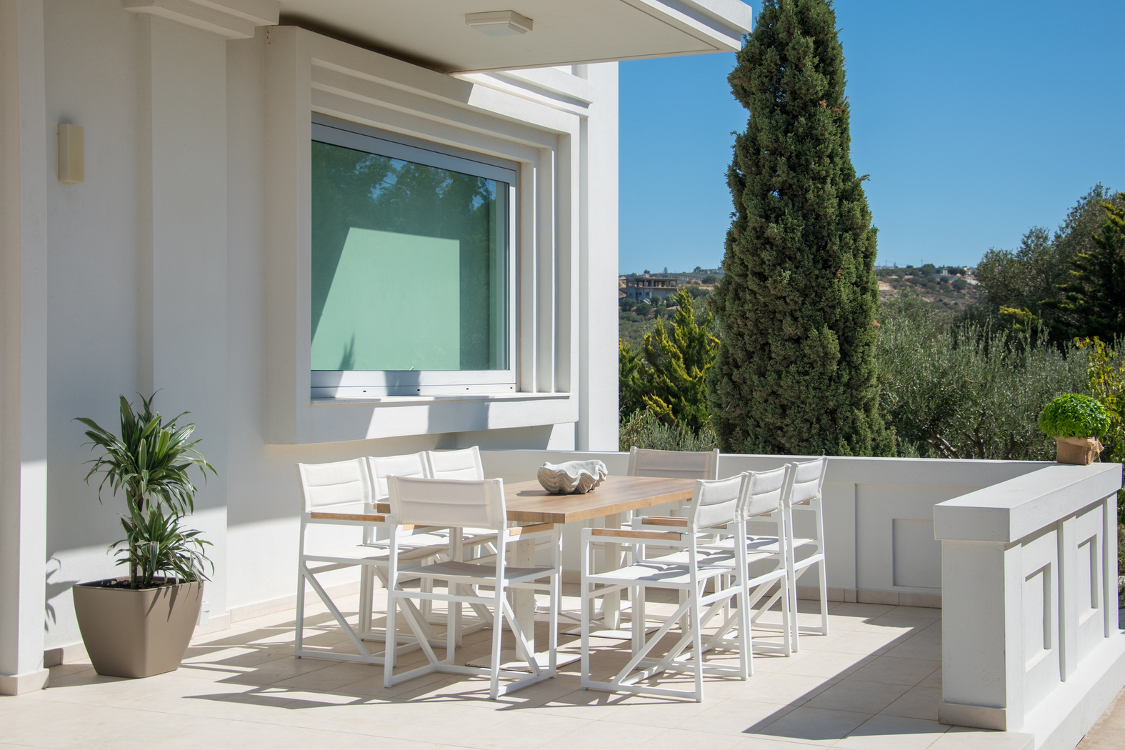 Σε ένα ήρεμο και γεμάτο πράσινο περιβάλλον, που περιβάλλεται από ελιές και καρποφόρα δέντρα, απλώνεται το The Mansion, μια πολυτελής βίλα με 470m² εσωτερικού χώρου και 2000m² εξωτερικού χώρου και κήπων, με εξωτερική πισίνα μήκους 15 μέτρων και εσωτερική θερμαινόμενη πισίνα 18m². Πρόκειται για ένα εντυπωσιακό κτήριο μοναδικού σχεδιασμού, με στοιχεία νεοκλασικής αρχιτεκτονικής συνδυασμένα με μοντέρνες γραμμές. Τα ελληνικά μάρμαρα, το ξύλο βελανιδιάς και το γυαλί είναι τα υλικά που κυριαρχούν.