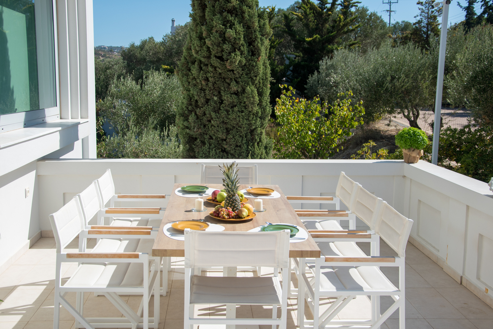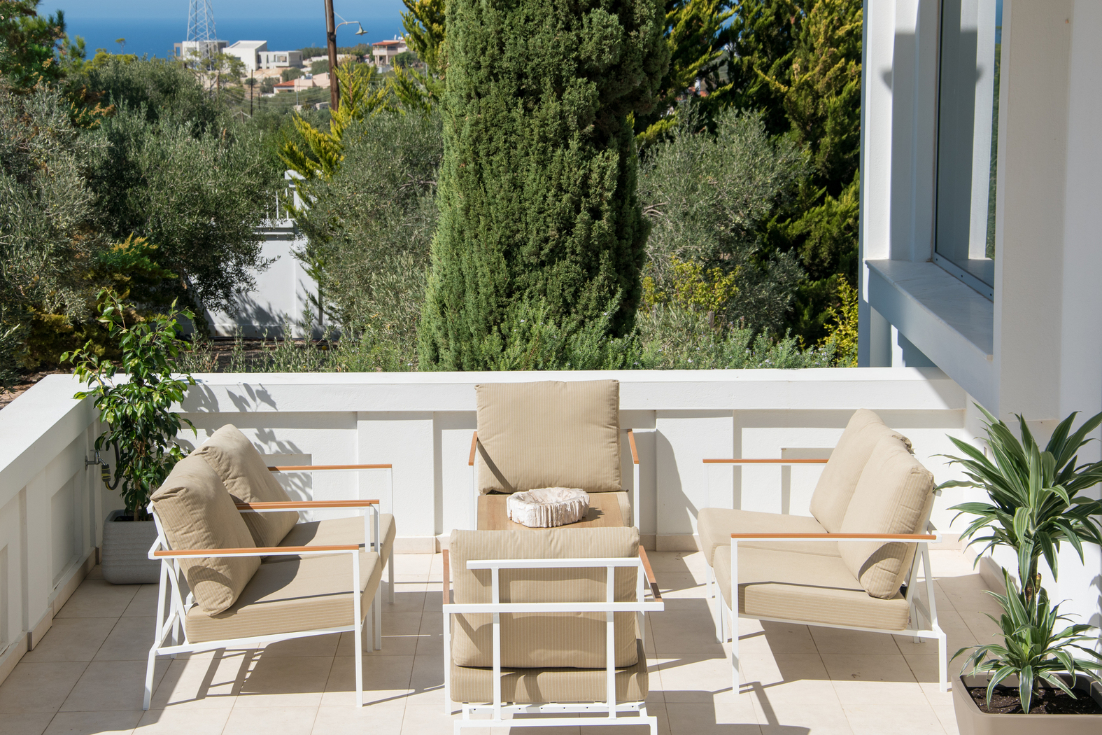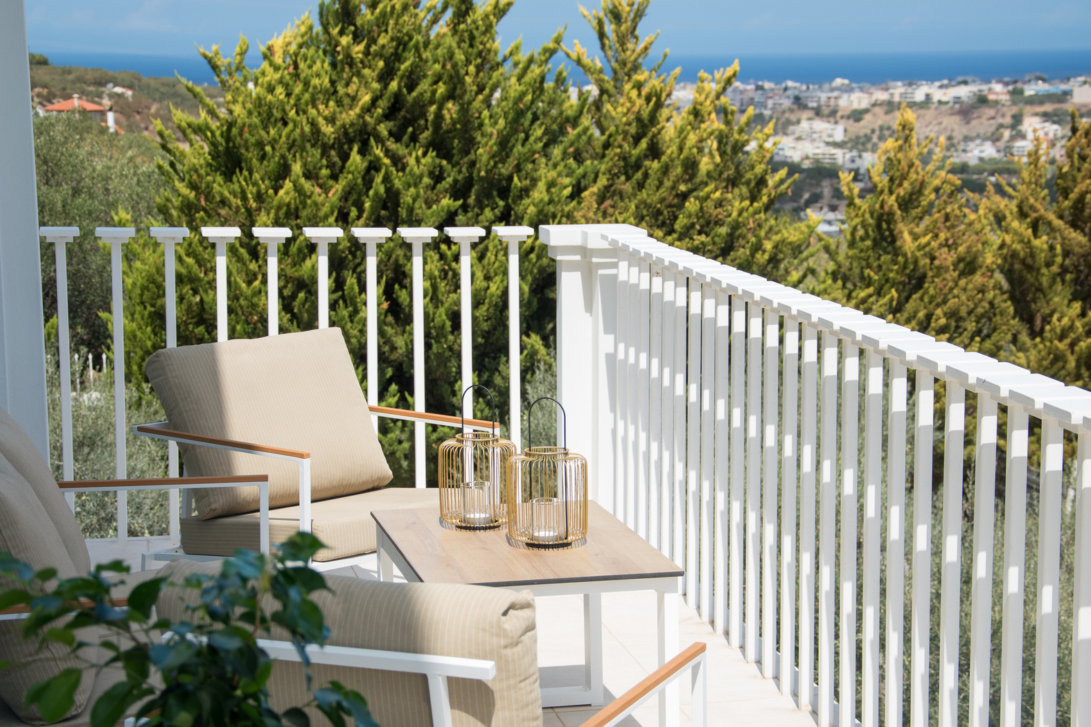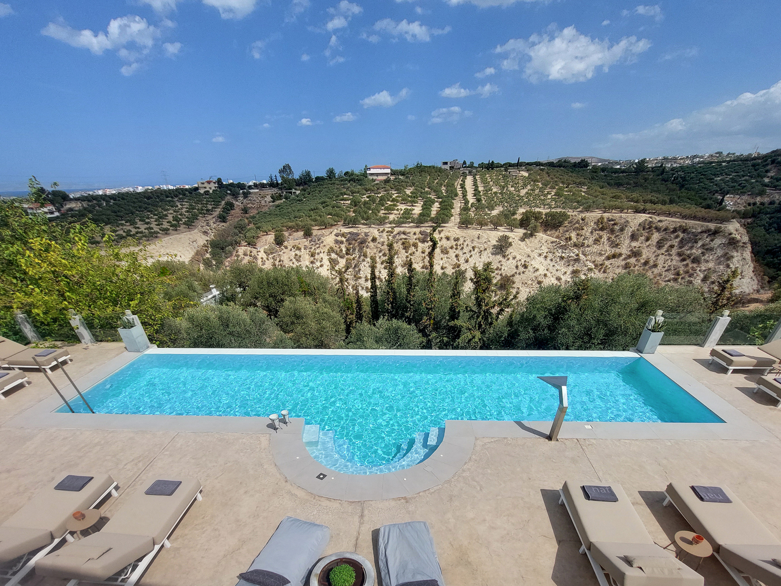 Η τοποθεσία του The Mansion επιτρέπει στον επισκέπτη να απολαμβάνει μοναδική θέα από όλα τα σημεία της βίλας. Υπάρχει καταπληκτική θέα του Κρητικού Πελάγους και πανοραμική θέα της πόλης του Ηρακλείου. Ο επισκέπτης έχει την επιλογή να ξεκουραστεί σε βεράντες και μπαλκόνια 350m² που περιβάλλουν τη βίλα.