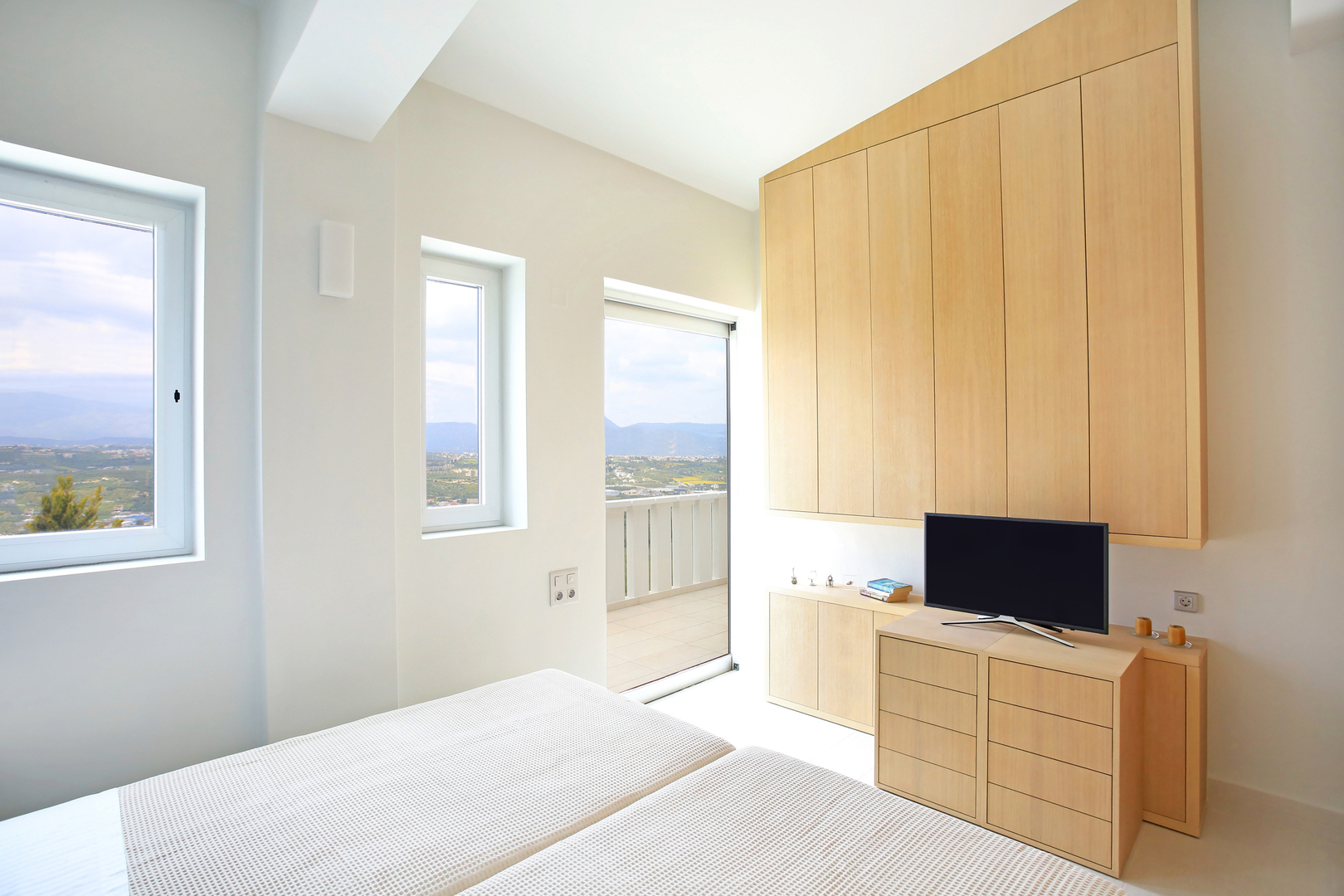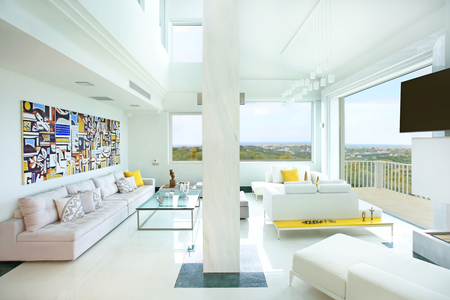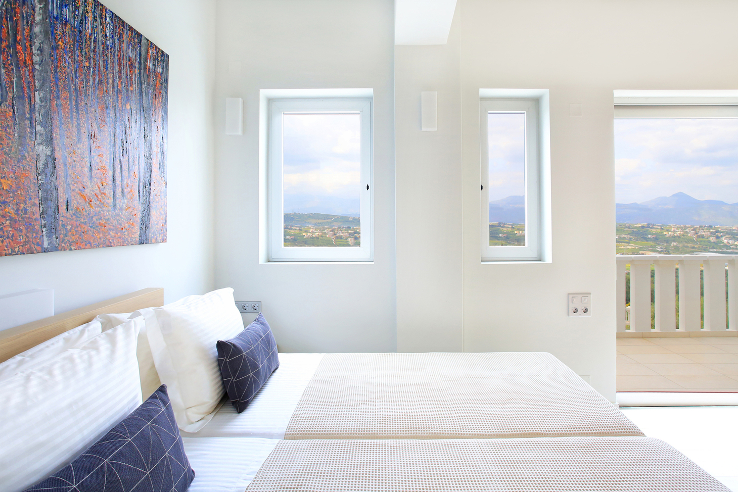 Η τοποθεσία του The Mansion επιτρέπει στον επισκέπτη να απολαμβάνει μοναδική θέα από όλα τα σημεία της βίλας. Υπάρχει καταπληκτική θέα του Κρητικού Πελάγους και πανοραμική θέα της πόλης του Ηρακλείου. Ο επισκέπτης έχει την επιλογή να ξεκουραστεί σε βεράντες και μπαλκόνια 350m² που περιβάλλουν τη βίλα.