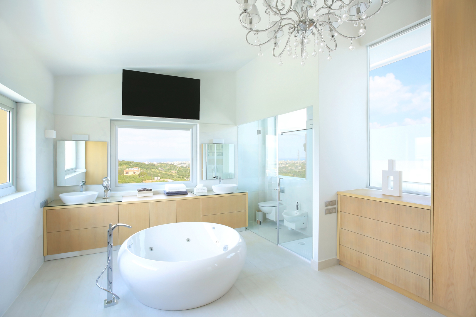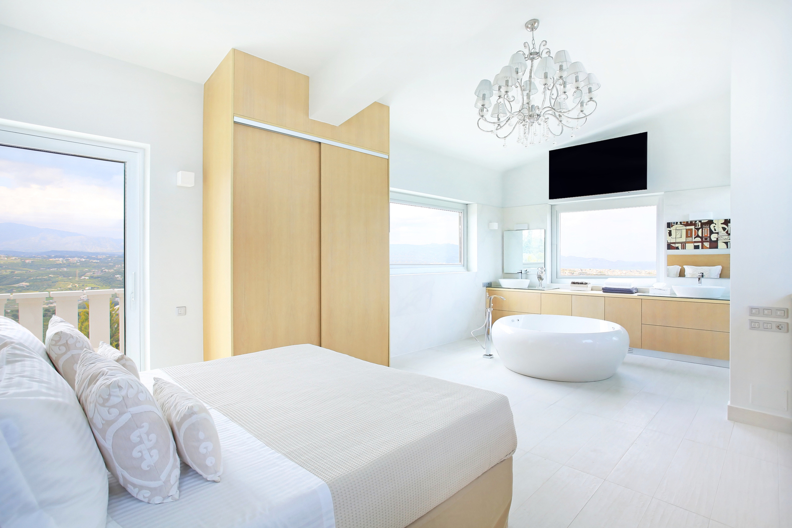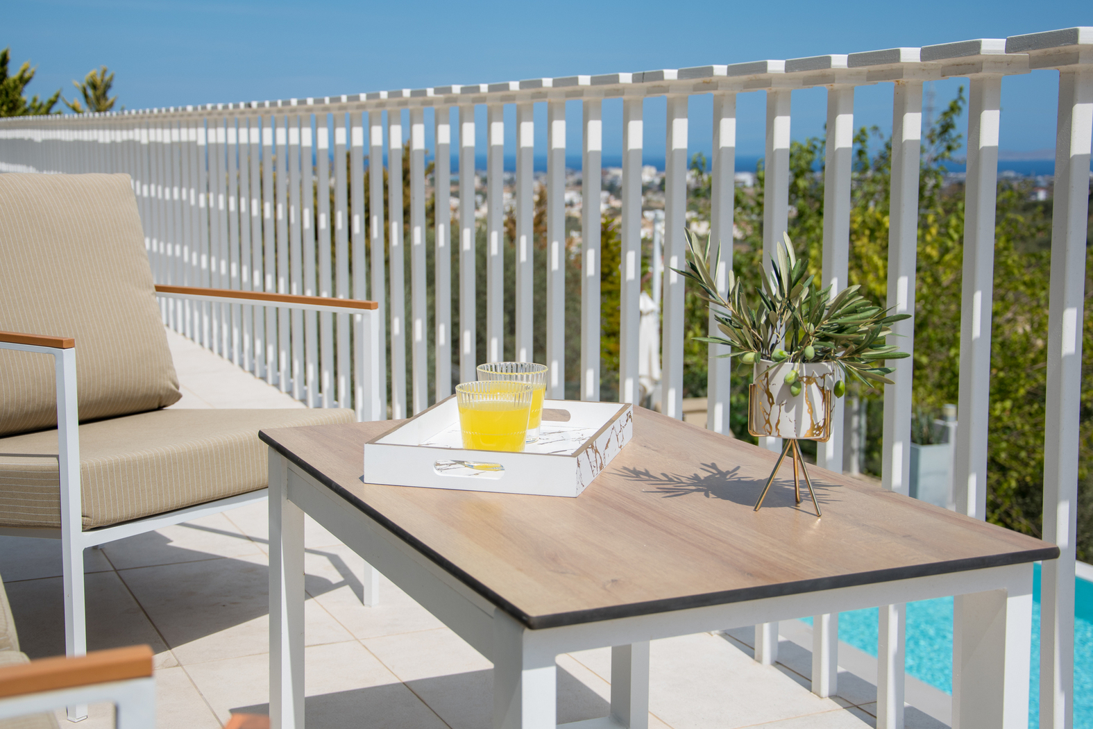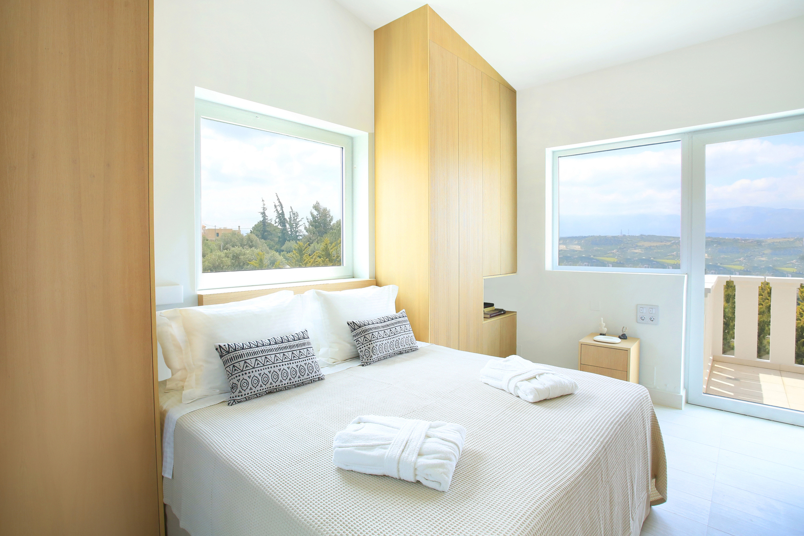 Η τοποθεσία του The Mansion επιτρέπει στον επισκέπτη να απολαμβάνει μοναδική θέα από όλα τα σημεία της βίλας. Υπάρχει καταπληκτική θέα του Κρητικού Πελάγους και πανοραμική θέα της πόλης του Ηρακλείου. Ο επισκέπτης έχει την επιλογή να ξεκουραστεί σε βεράντες και μπαλκόνια 350m² που περιβάλλουν τη βίλα.