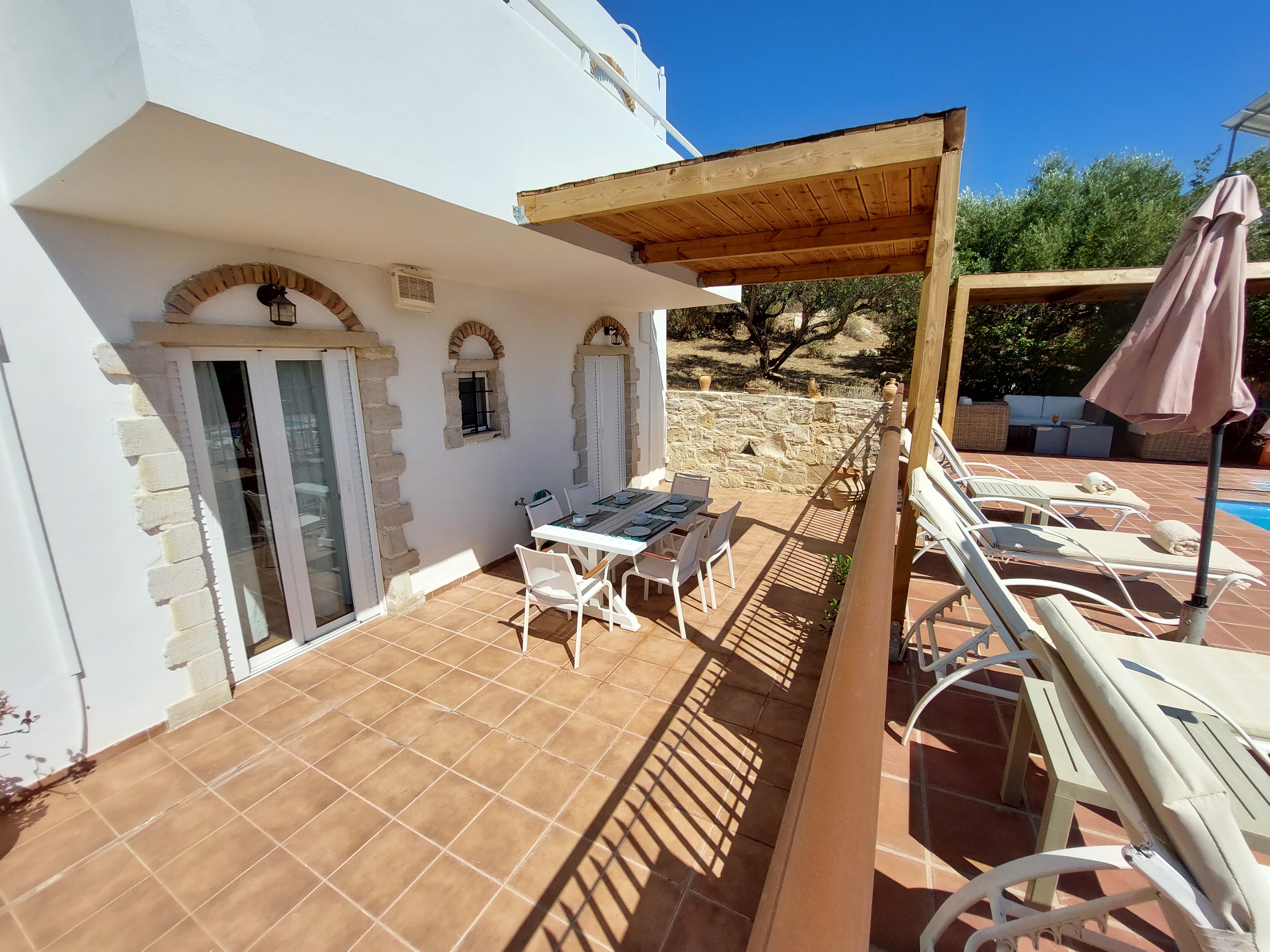 “Phaestias Villas ” is a series of five detached villas, that is located 1 km far from the beach of Kalamaki- Kommos, the longest sandy beach of southern Crete. It is set into a hillside having the mountain at its back and an unimpeded view of the stunning sunset in the front. Each Phaestias villa consists of two floors.