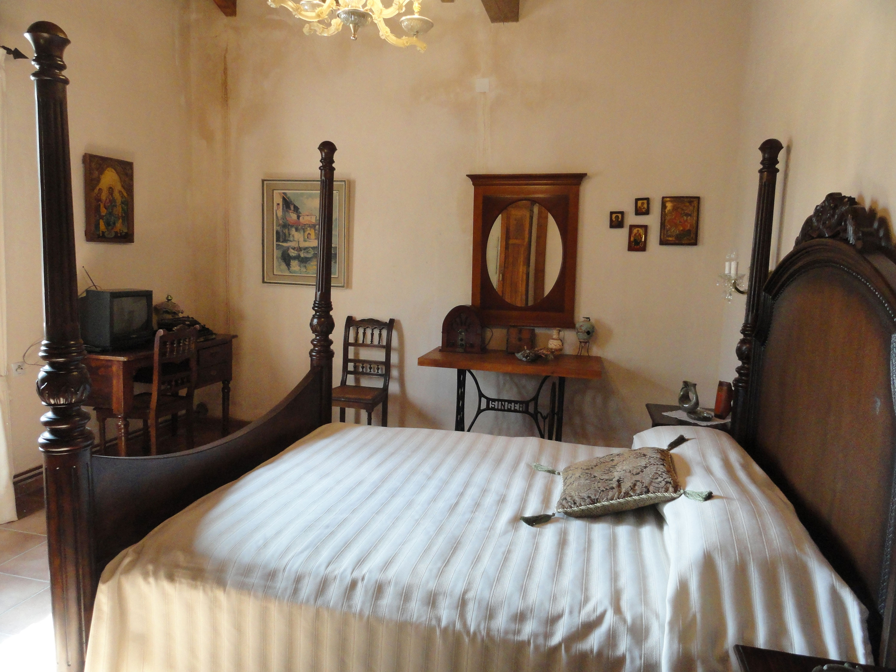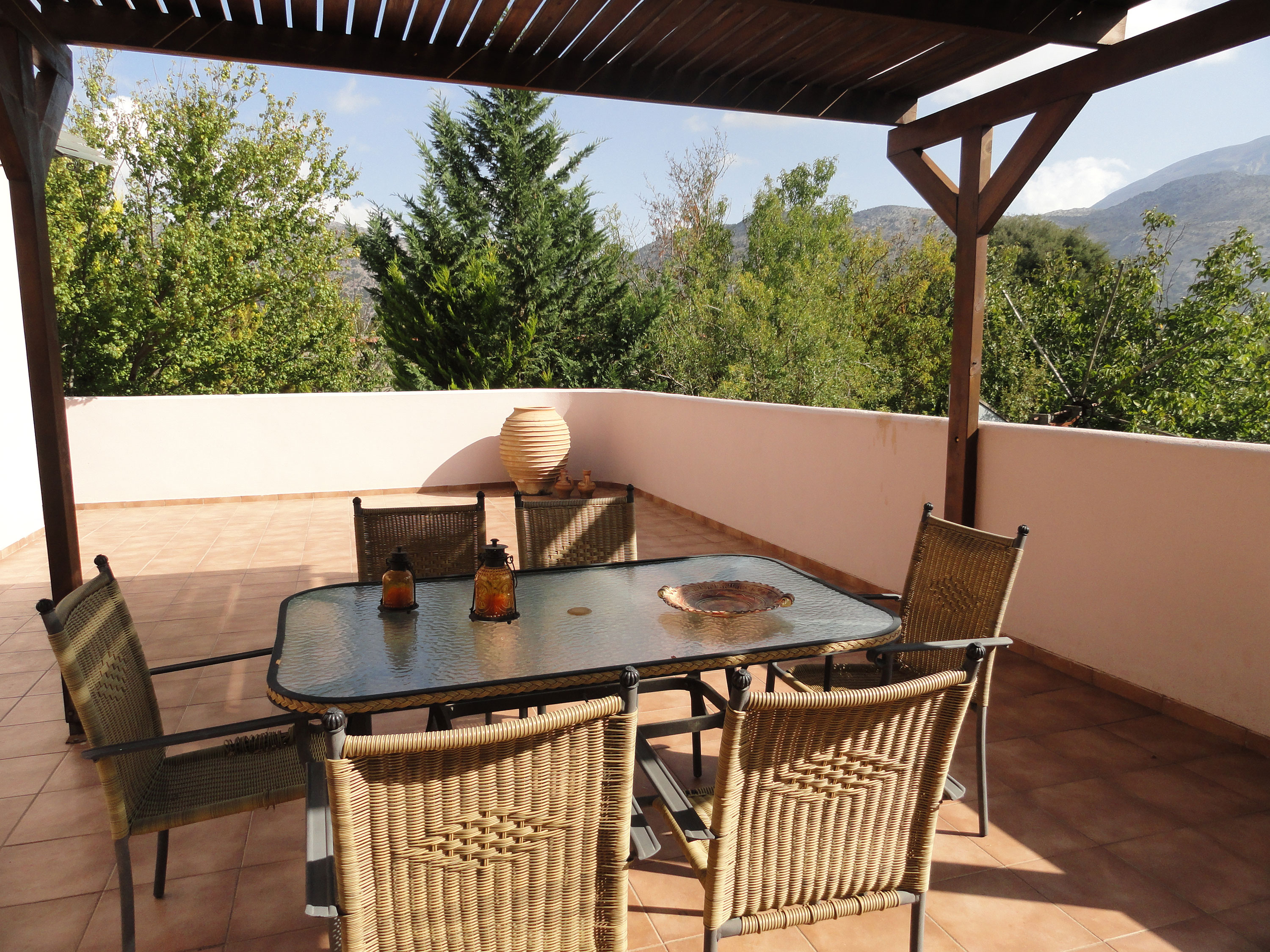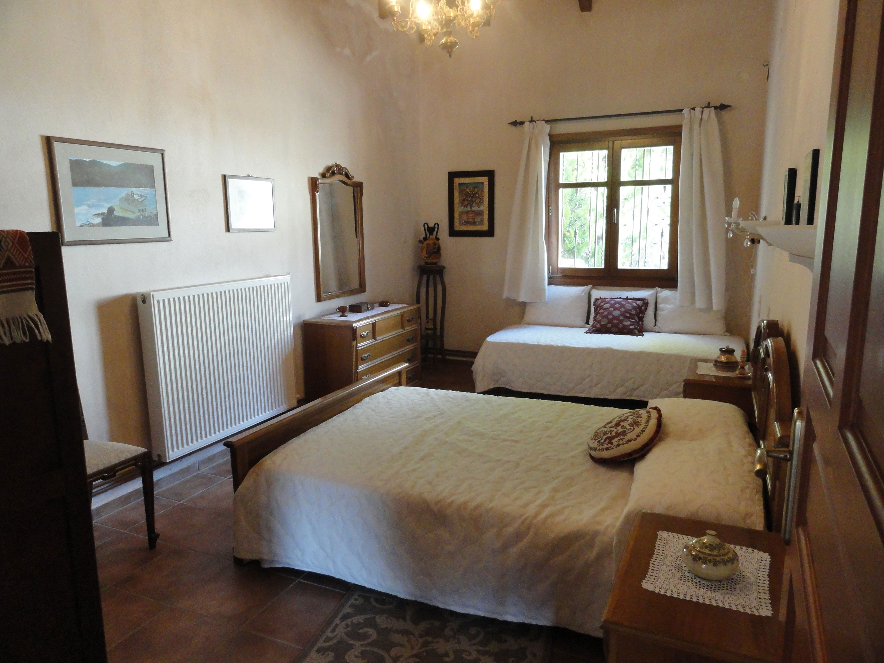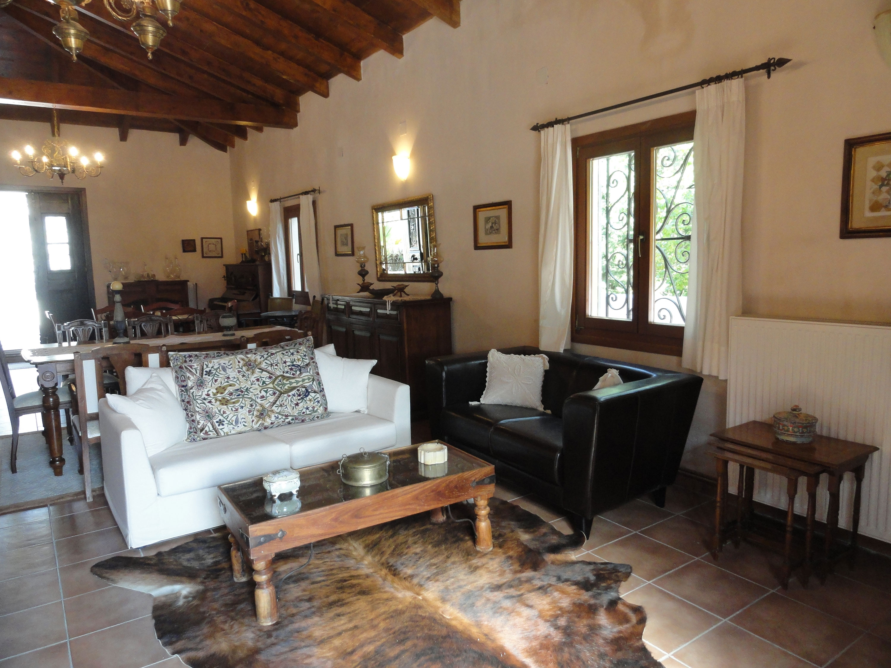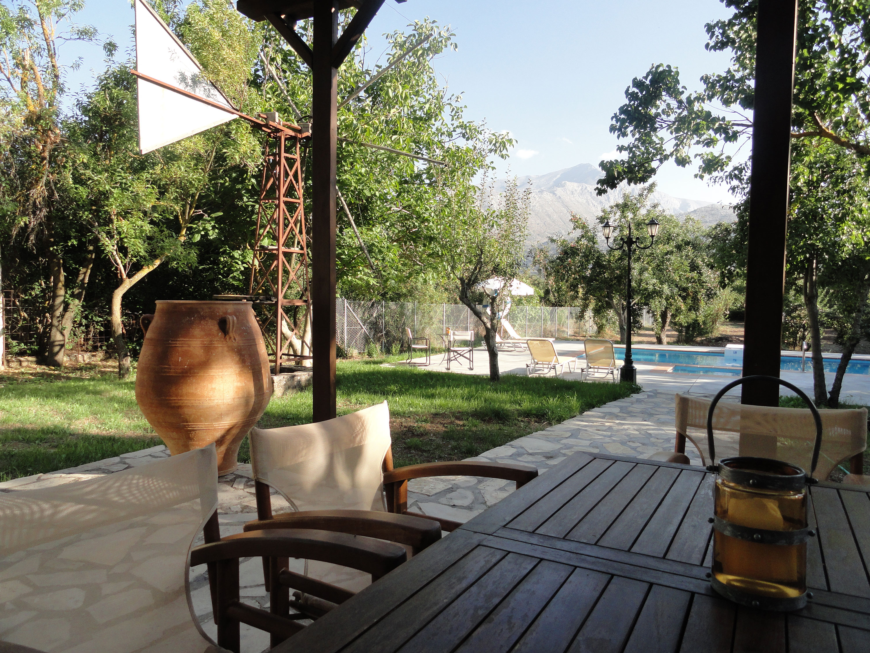 Inside the Gaia main house, as well as inside the Esperos guest house, there is a fireplace and a piano antique, for lovers of music and historical items. Both houses are furnished with original traditional pieces of furniture and are decorated according to the Cretan tradition while at the same time it provides the visitor with all the comforts, creating a hospitable environment and allowing the guests to feel at home. From the terrace, there is a view of the lush green garden, the pool, the field and the majestic Dikti Mountain.
